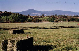 Ghost Ranch with Pedernal in the background. Pedernal is the mountain Georgia O'Keeffe painted many, many times. When asked if she thought she owned it, she said: "Well, God told me if I painted it enough, I could have it."